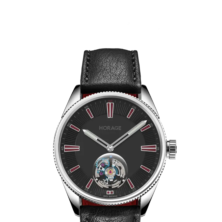 For the Lensman 1.1 tourbillon we have added the iconic red colour of the photography world to the dial and indices of the timepiece. Filled with red luminous, a red 60-minute marker and a reworked strap with a red underside.