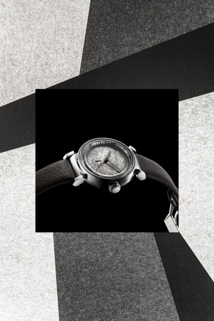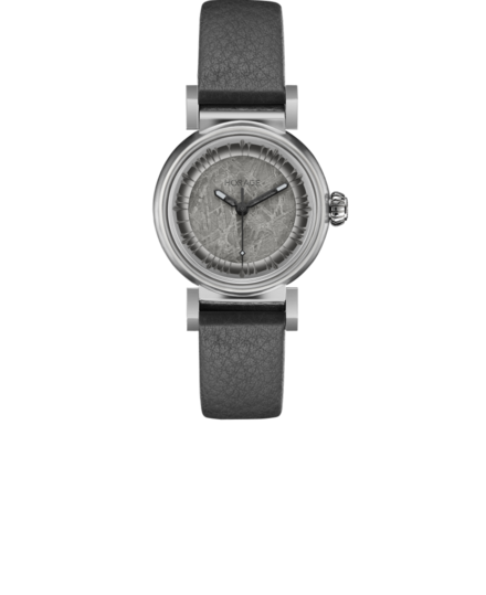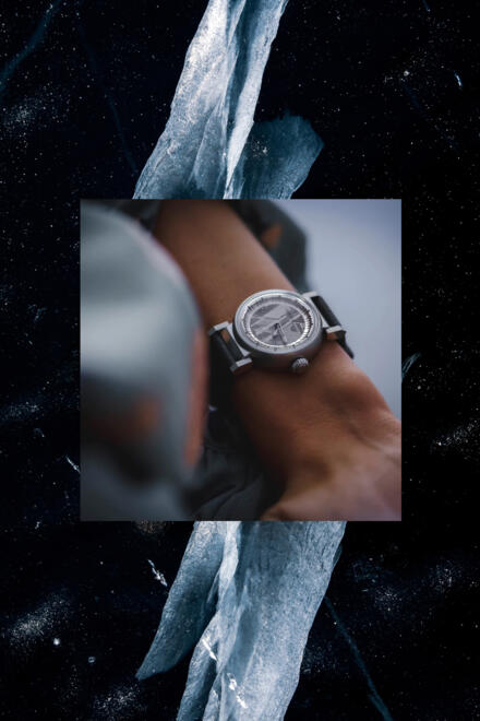 The show stopper is the meteorite dial and stainless steel chapter ring inspired by a deep impact crater. Each watch is completely unique and features a one of a kind slice of outer space dating back nearly 4.3 billion years. The value of the meteorite used is 40 times that of gold, making this one of the most sought after, luxurious dial options in modern watchmaking. The unique all-natural Widmanstätten linear structures of the dial can only be created in nature as the tens of millions of years required to start simply cannot be re-created here on earth.