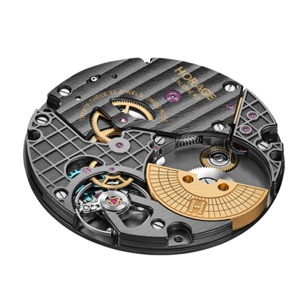 錶冠:904L 不鏽鋼旋入式錶冠,飾有Horage 的首字母H 。