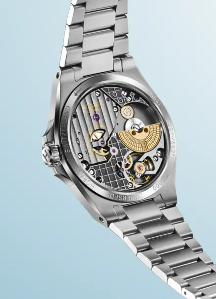 高度拋光的時標和鑽石切割的指針裝飾著錶盤,錶盤上的瑞士超級夜光塗層(Super LumiNova®)在柔和的光線下發出深藍色的光芒。