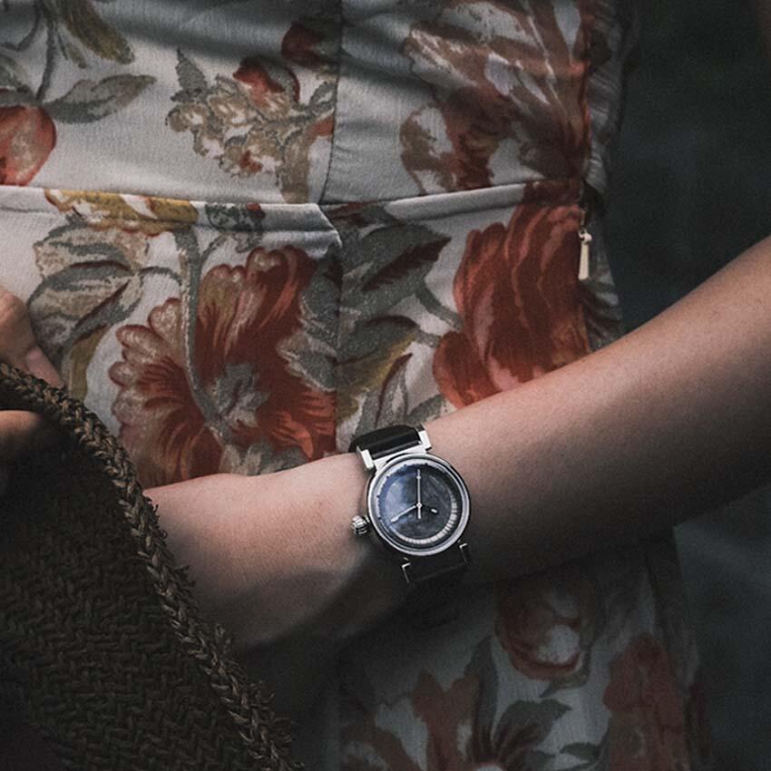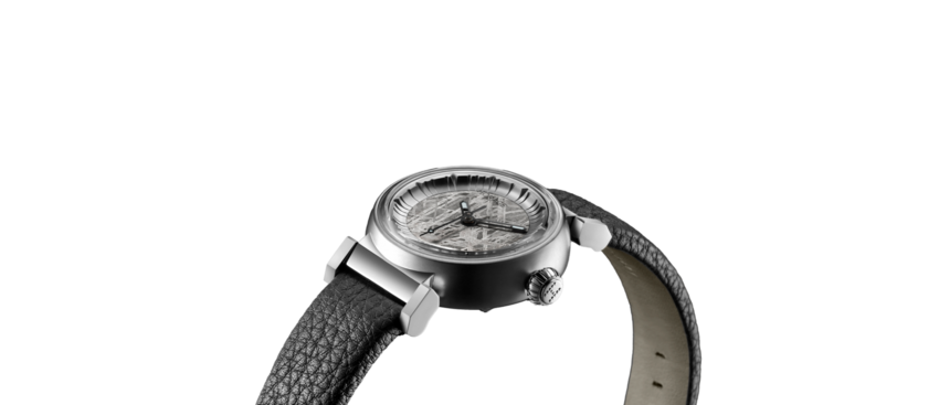The show stopper is the meteorite dial and stainless steel chapter ring inspired by a deep impact crater. Each watch is completely unique and features a one of a kind slice of outer space dating back nearly 4.3 billion years. The value of the meteorite used is 40 times that of gold, making this one of the most sought after, luxurious dial options in modern watchmaking. The unique all-natural Widmanstätten linear structures of the dial can only be created in nature as the tens of millions of years required to start simply cannot be re-created here on earth.