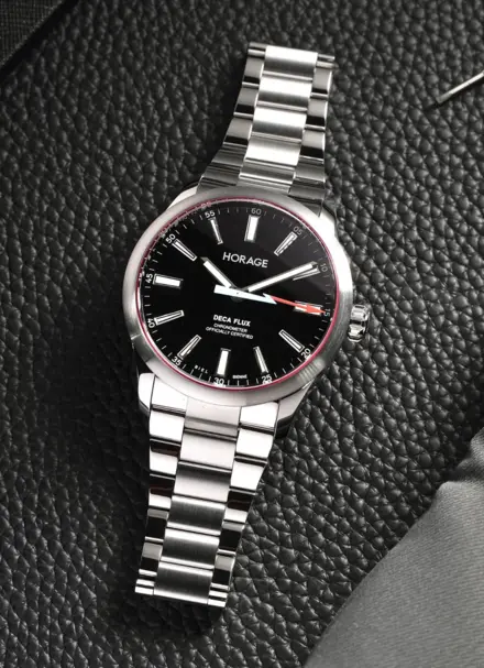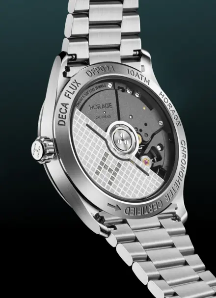 DecaFlux是首款搭载HORAGE自主研发的新型硅技术K3机芯的腕表,该机芯在比尔制造。自始至终HORAGE一直致力于将硅技术融入机芯之中。DecaFlux将在不妥协性能的前提下,为更多表友享受到这项技术。