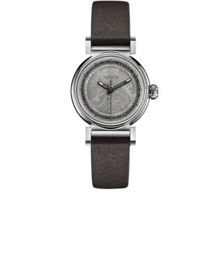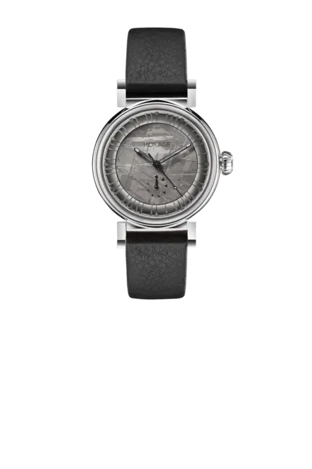 在表底盖可以通过蓝宝石水晶镜面看到机芯自动陀上雷雕的HORAGE标志;而不锈钢表底盖上则刻有克里斯托弗·哥伦布的名言:“迎着阳光,我们向过往的世界道别。”