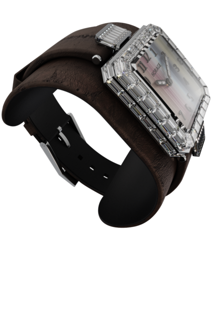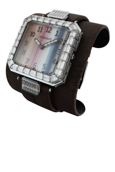 易系列彰显了Horage 作为瑞士最年轻的独立机芯开发商。我们的高级腕表在 18K 白金上镶嵌了 100 颗内部完美无瑕的现代法棍式切割钻石。这款腕表代表了我们对未来开明奢华制表业的承诺。