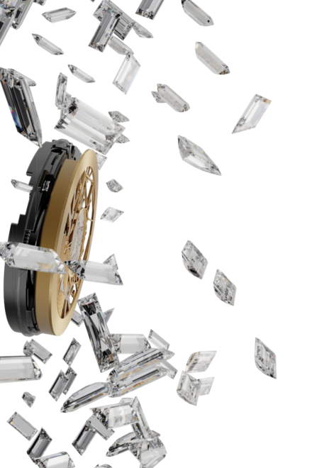 我们的 100 颗现代法棍式切割钻石最初是 46 克拉的毛坯钻石。经过切割和抛光后,它们的总重量为 17.48 克拉,净度为 IF- VVS,色度为 D-E。瑞士 GGTL 实验室认证它们的平均净度为 IF(内部无瑕),颜色为 E-F(无色)。每颗钻石均在瑞士手工切割、抛光,并镶嵌在隐形底座上,与表壳浑然一体,堪称时间的精美定格。CVD 钻石虽然是在实验室中制作而成,但却拥有与天然钻石同样的眩目美感和顶级品质。