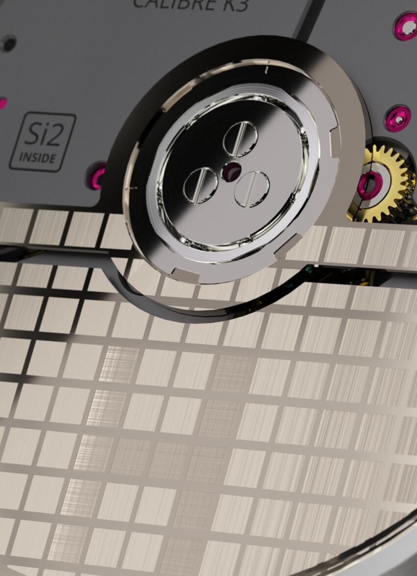 K3機芯配備矽擒縱機構,包含擒縱叉與擒縱輪。此外,游絲亦由此高科技材料製成。